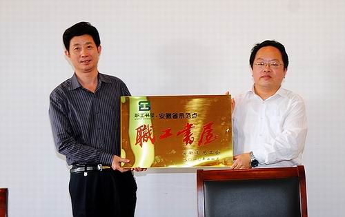 4月27日下午,安徽省总工会副主席陈平、宣传部部长唐定永在pa捕鱼网官网工会副主席李鹏飞等领导的陪同下,到pa捕鱼网官网技师学院出席“职工书屋”省级示范点授牌仪式。