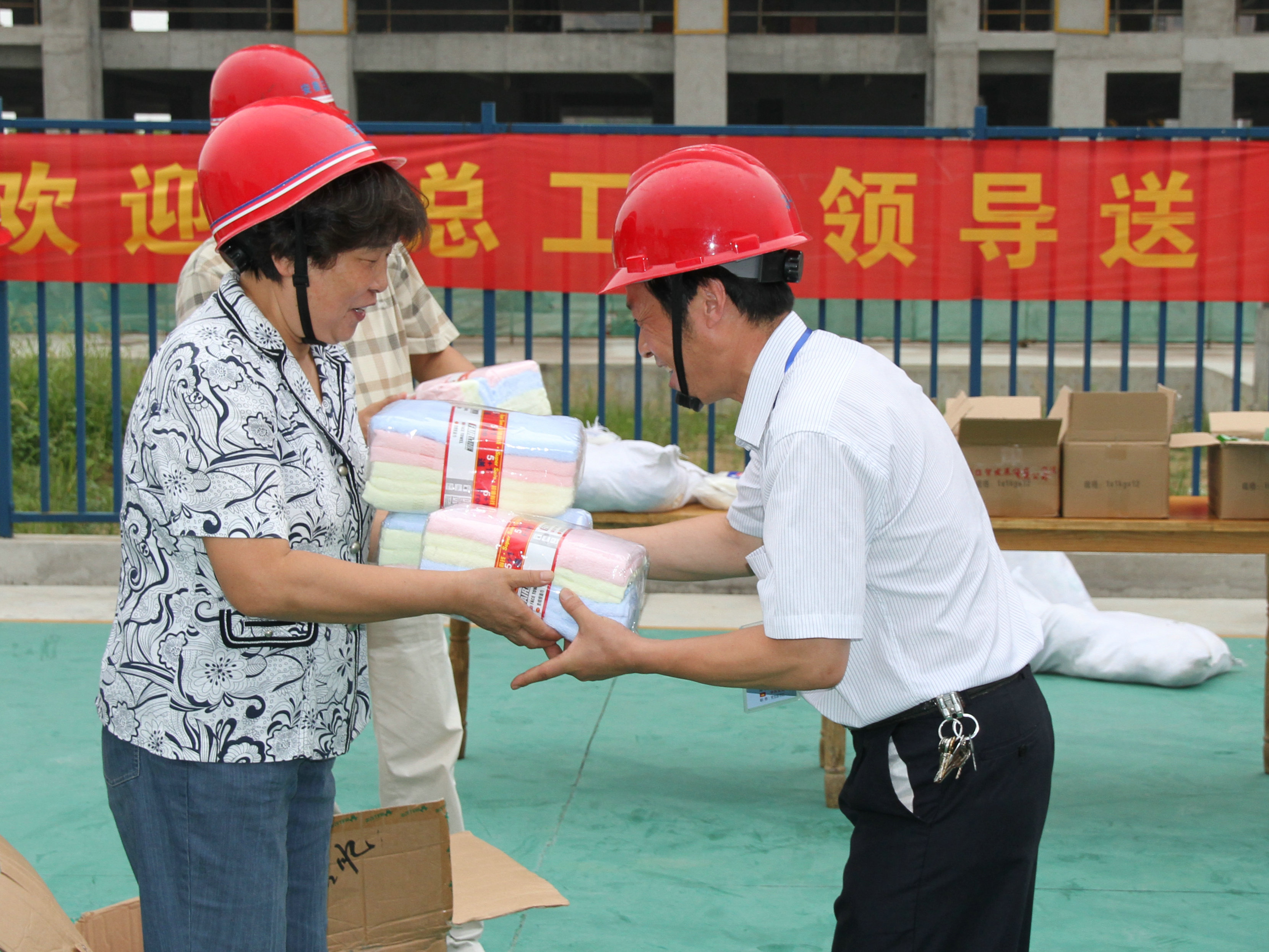8月1日,安徽省总工会党组成员、巡视员牛和桂、保障工作部部长卞长虹,劳动保护部副部长赵新宇一行在集团公司纪委书记、工会主席牛曙东、工会副主席李鹏飞、女职委主任胡爱红等陪同下,到安徽三建滨湖高速地产工程项目部“送清凉”。