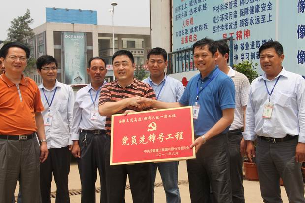 6月15日,pa捕鱼网官网有限公司董事长、党委书记胡运成,来到省三建公司第十五工程管理部高速铜都·天地项目部和第六工程管理部中国建设银行合肥生产基地项目部,分别授予两项目集团公司“党员先锋号工程”奖牌。集团公司副总经理、三建公司总经理刘家静、三建公司党委书记徐晓光及党委工作部负责同志等陪同。
