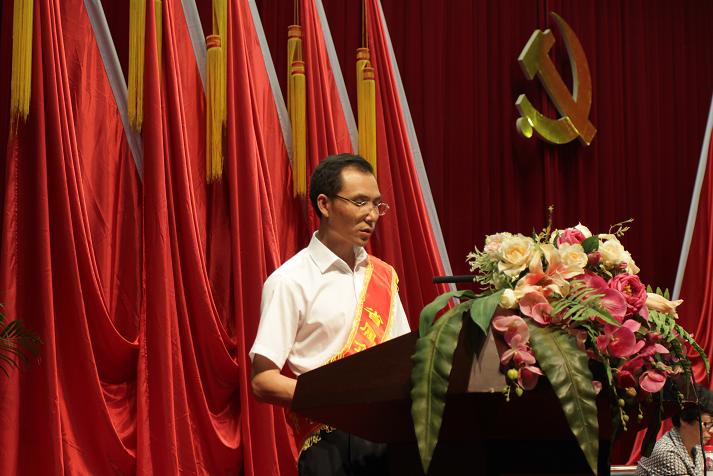 省三建公司项目经理吴明宽同志作为优秀共产党员代表上台领奖,并做了先进事迹交流发言。