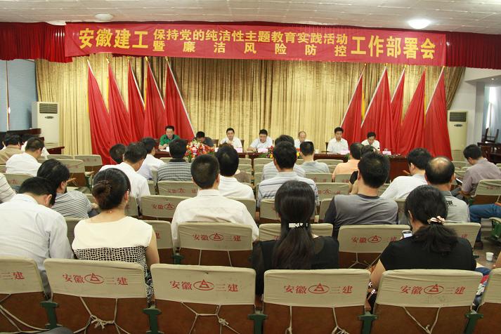 2012年7月6日上午,集团公司在省三建公司五楼会议室,召开了“保持党的纯洁性,迎接党的十八大”主题教育实践活动动员暨廉洁风险防控工作推进部署会,集团公司领导班子成员;所属单位党政主要负责人、纪委书记、党办负责人、监察室主任;集团机关党委(党支部)书记及各职能部门负责人等110人参加了会议,集团副总经理、董事刘家静主持会议,集团公司董事长、党委书记胡运成作重要讲话。