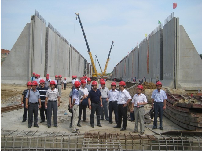 与会人员观摩了巢湖复线船闸01标项目施工现场。项目经理就工程概况、工程进度、项目管理及工程重难点、质量控制、安全生产、文明创建以及企业文化宣传等各方面情况进行了交流汇报。会上,工程管理部通报了六月份生产任务完成情况:6月份,集团公司完成产值376834万元,完成月计划的116%,比去年同期增长40%。二季度完成产值941550万元,完成季度计划的109%。并对七月份生产、安全、技术质量管理方面工作作了布置:7月份是汛期,各单位要安排好工作计划。对在建的BT项目加强管理,控制工期成本,降低风险。各单位就六月份生产任务完成及安全生产情况和七月份的工作安排分别作交流汇报。集团机关相关部门就相关业务作要求发言。