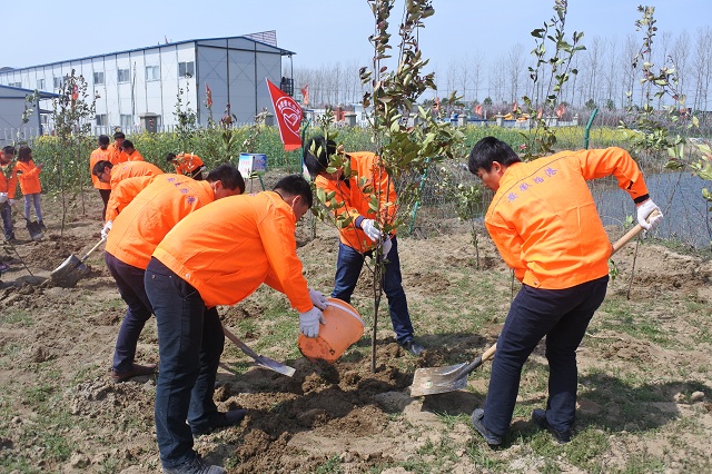 春回大地万物苏,植树添绿正当时。为践行环保理念,项目部团支部于3月21日组织了植树活动。大家统一着装,佩戴志愿者徽章,高扬“建工青年志愿者服务队”队旗,在拌和站及项目部附近的空地上种植了近500棵树苗。活动中,志愿者们积极行动,干得热火朝天,大家三五人一组,挥锹铲土,扶苗填坑,踏土夯苗,认真完成每一道工序。看着一株株“青年志愿树”成功栽种,大家都露出了会心的笑容,项目部也在喜添新绿后变得生机盎然。
