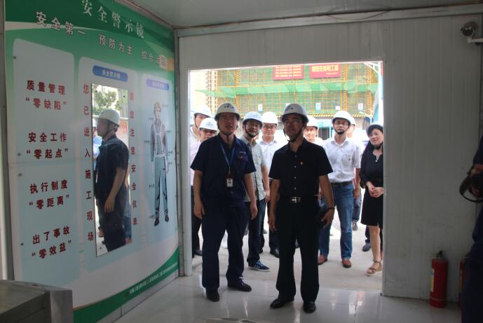 费书记一行首先深入施工现场参观了解工程建设情况,并不时询问青年职工的生活情况及存在的困惑和问题。费书记为整个施工现场布局整齐、场地整洁、环境绿化美观及工程创新技术的应用表示高度赞赏。