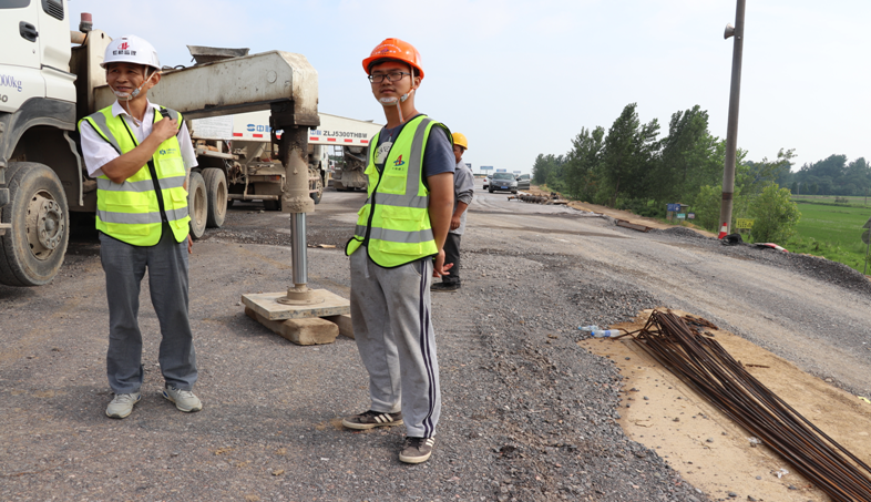 针对工程技术难度大、试验项目多的特点,试验室主任汤云飞多方查阅资料,带领试验人员增加试验检测频率,按照“事前预测、事中控制、事后评估”的方法,严把质量关。工期紧张时,他几乎整天都在拌合站和摊铺现场,试配配合比,采集各项数据, 分析、调整、再试验,每天只能睡上4、5个小时。