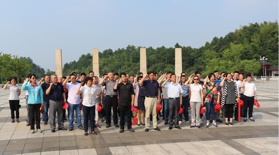 集团机关60多名党员来到霍山县烈士陵园,在革命先烈雕像前列队、鞠躬、敬献花篮;霍山是红军的故乡,将军的摇篮,是皖西革命的老根据地,1930年1月,这里组建了安徽第一支正规军——中国工农红军第十一军第三十三师,是红四方面军的重要主成部分,在大别山区进行了多年艰苦的对敌武装斗争。面向革命先烈雕像,新党员进行了入党宣誓,老党员重温入党誓词并开展了戴党徽,亮身份活动;广大党员怀着十分敬仰地心情、在神圣庄严地气氛中完成以上各环节。