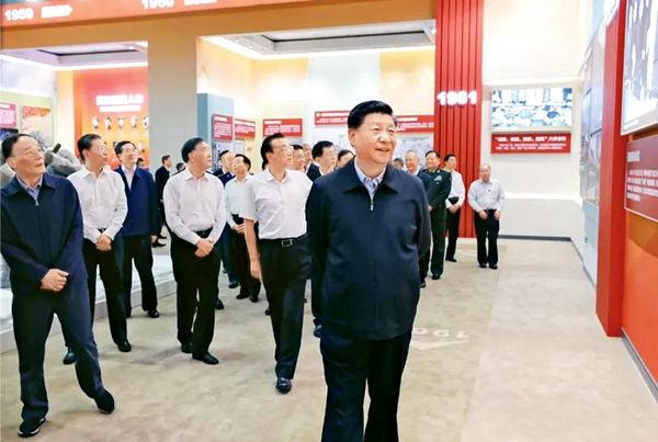 2019年9月23日,党和国家领导人习近平、李克强、汪洋、王沪宁、赵乐际、韩正、王岐山等在北京展览馆参观“伟大历程 辉煌成就——庆祝中华人民共和国成立70周年大型成就展”。 新华社记者 鞠鹏/摄