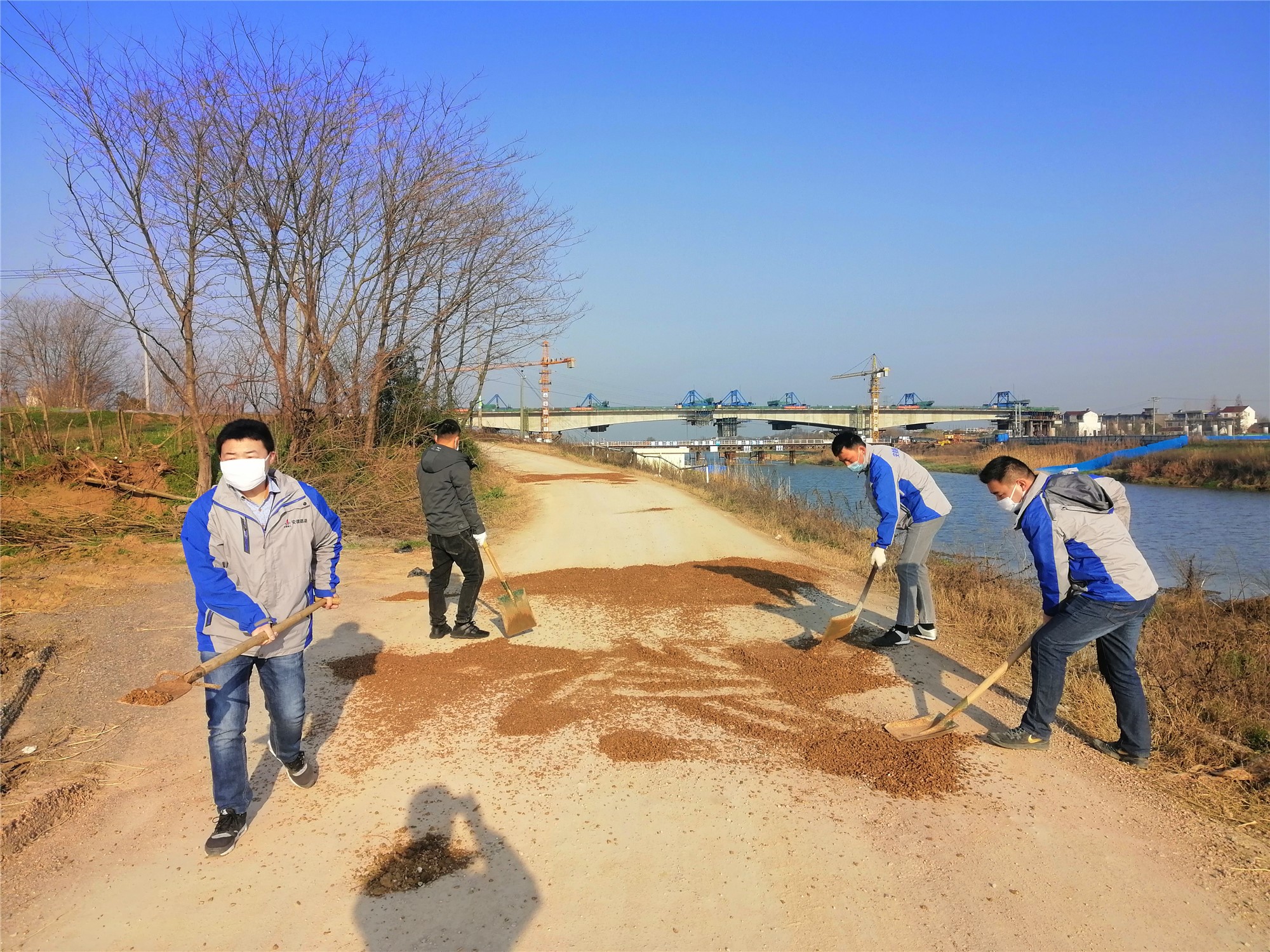 在做好项目内部防疫工作的同时,青年职工们积极与当地社区委联系,担负起工地周边道路清扫、修整等工作,保障周边居民良好的通行环境。