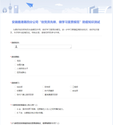 积极引导职工群众,科学参与疫情防控。分公司开展“创党员先锋,做学习宣贯模范”线上防疫知识答题活动。