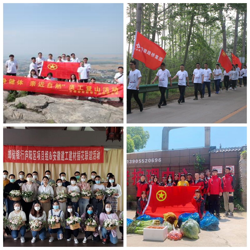 “汇聚青春力量,展示青春风采。”安徽一建组织项目团员青年开展五四青春运动会。安徽二建组织在蓝山湾木艺小镇开展团建活动,举行“大锅灶”厨艺大比拼、拔河比赛和跳绳比赛。安徽三建组织开展以“让青年在奋斗中有为,让青年在奋斗中闪光”为主题的环保毅行活动和击鼓传花、诗歌朗诵、企业文化理念知识竞答等活动。路桥集团、安徽路港、安建总承包等相继组织开展健步走活动、乒乓球比赛、篮球友谊赛、羽毛球比赛等。安徽安装组织所属团支部开展“强身健体•亲近自然”员工登山和“重温历史记忆,学习新农村建设”主题团日活动。安徽交航亳州PPP项目利用晚间休息时间为项目本月过生日的员工举行别出心裁的集体生日会。安建建材团委与邮储银行庐阳区分行联合举办花艺培训及插花活动。安建地产组织项目团支部结合当前疫情防控及复工复产,开展“以青春之名,向五四致敬”卡片寄语活动。安徽水利开展“同心战疫,爱心助农”活动,为解决蚌埠市菜农蔬菜滞销问题贡献青年力量。通过开展系列文体活动,进一步活跃了青年文化生活,营造了良好氛围,展示了新时代建工青年的良好风貌和青春风采。