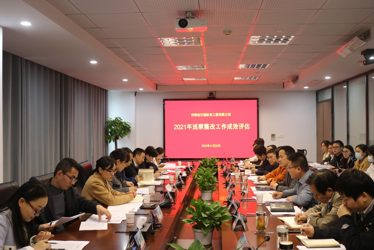 为进一步巩固巡察整改工作成果,压实被巡察单位整改主体责任,11月23日下午,集团纪委机关、党委工作部、巡察办、巡察组4个部门和机构组成评估检查小组,对安徽交航党委2021年巡察整改工作成效进行现场评估。安徽交航巡察整改工作领导小组副组长黄国平及机关各部门负责人参加会议。