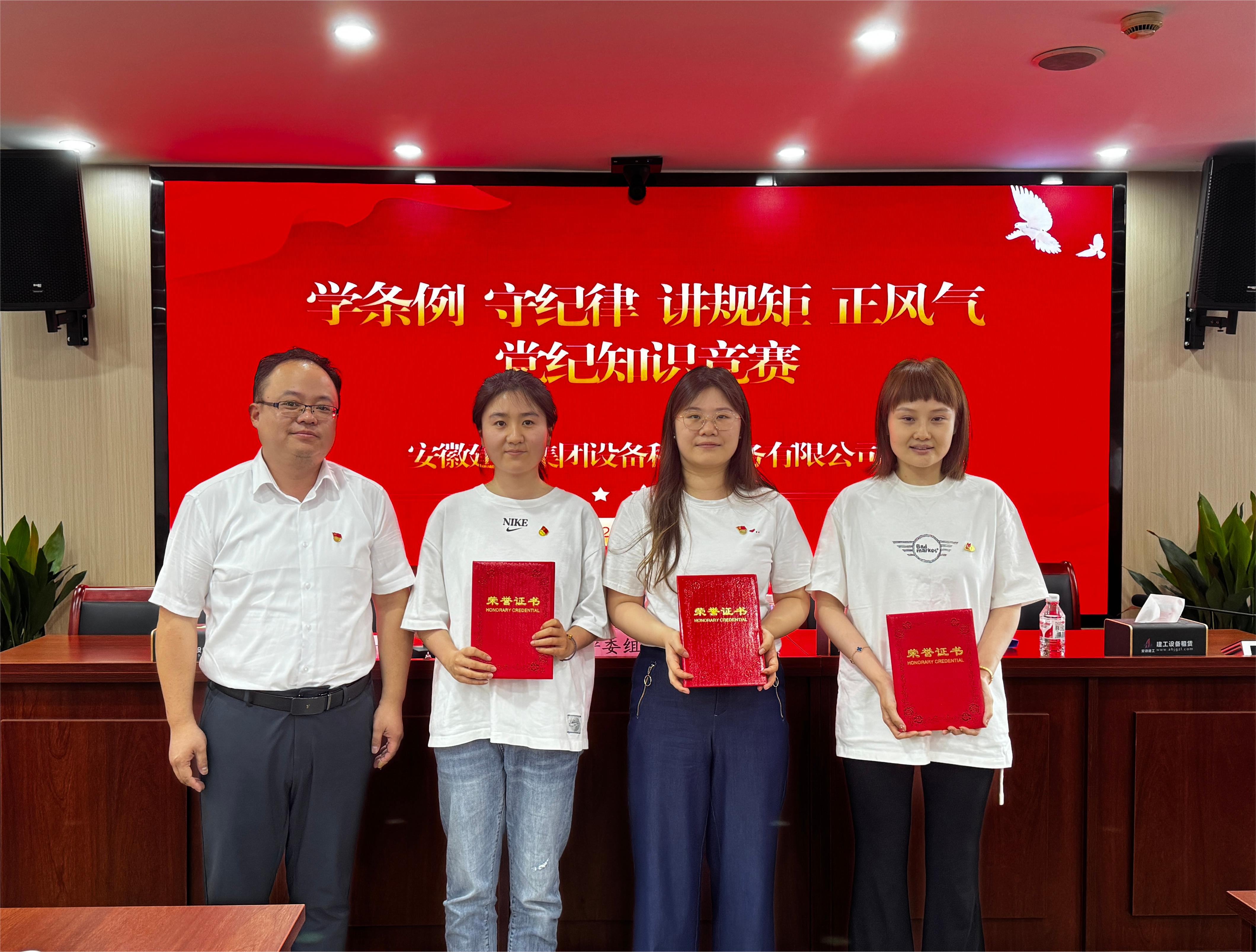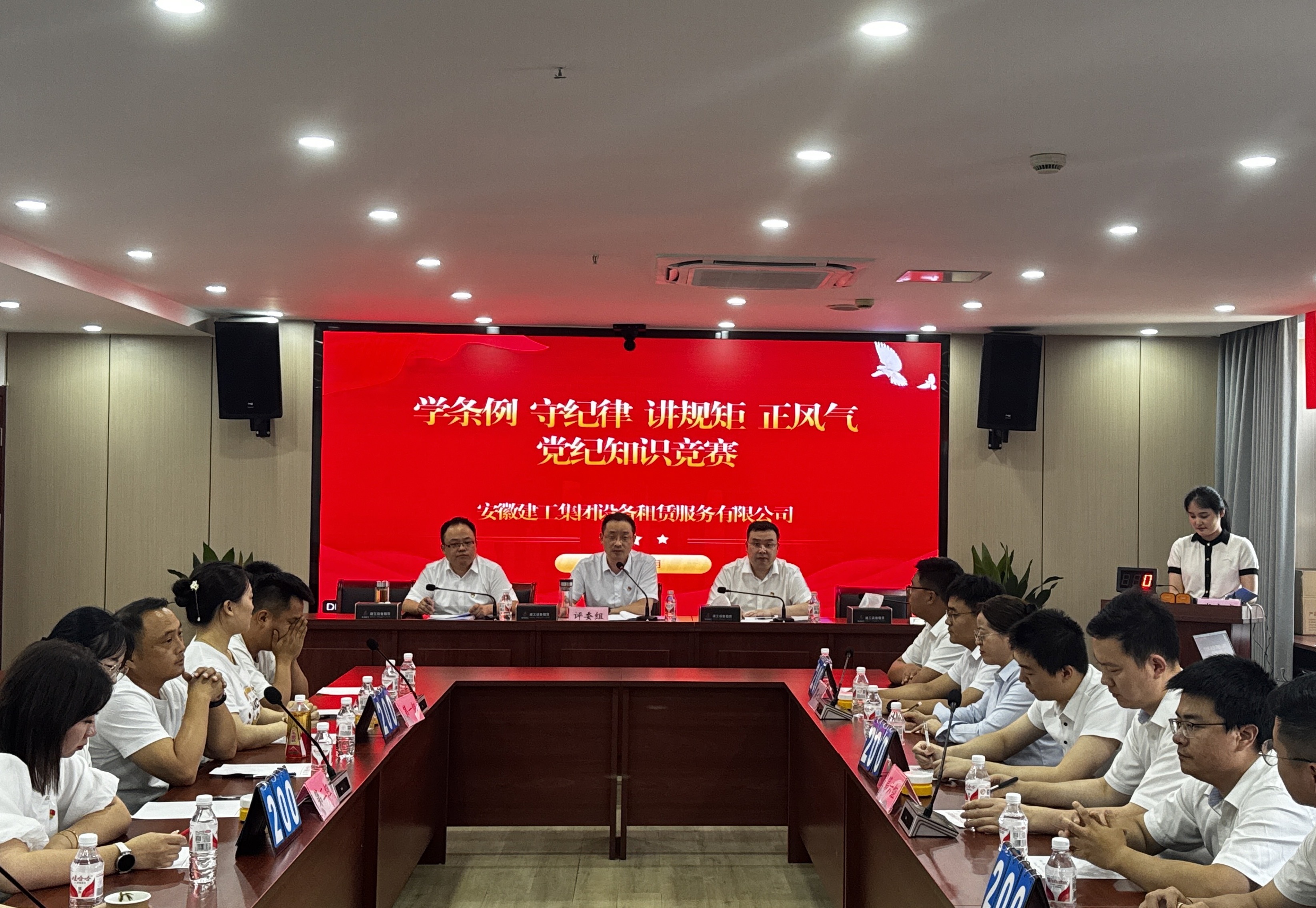 为持续深入推进党纪学习教育工作,6月20日,建工设备租赁公司党委举办了“学条例 守纪律 讲规矩 正风气”党纪知识竞赛活动,公司党委委员、副总经理、总工程师陈琪,党群工作部(人力资源部)部长肖伟、生产管理中心副主任梅岭应邀参加并担任竞赛评委,机关负责人、部分党员现场观赛。