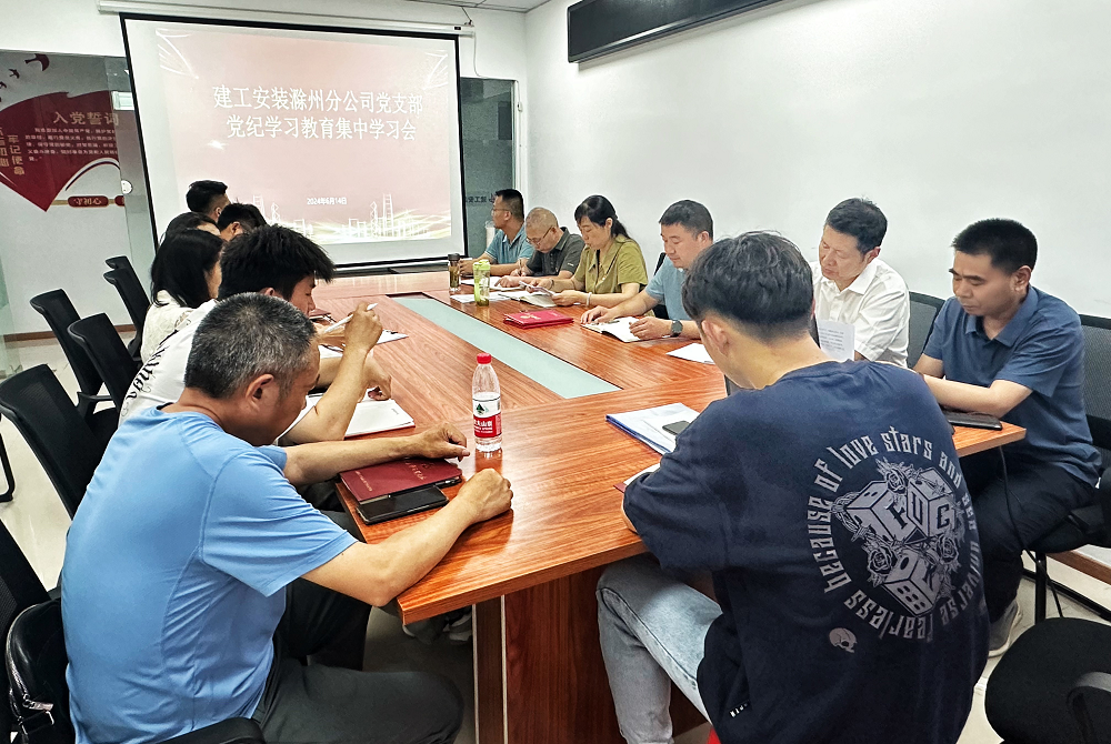 建工安装滁州分公司党支部组织召开了党纪学习教育集中学习推进会,会上传达了近期省国资及建工集团纪委关于违反中央八项规定精神典型问题的通报和《国有企业管理人员处分条例》相关精神,随后,带领与会党员干部原原本本学习了《中国共产党纪律处分条例》部分章节。引导党员干部以身作则,牢固树立规矩意识,结合本职工作,充分发挥“两个作用”,切实把党纪学习教育与贯彻落实集团和公司重大决策部署以及分公司各项实际工作结合起来,共同营造风清气正的政治生态,推动企业高质量发展。