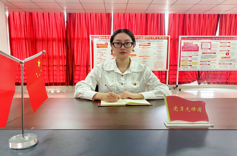 沈昳,女,中共党员,现任蚌埠公司党建专员。作为一名党务战线上的新兵,她加强自身理论学习,刻苦钻研业务知识,夯实党务工作根基,协助支部书记认真抓好支部的政治理论学习教育工作,做好“三会一课”、民主评议党员、党费收缴管理等基础性组织建设工作。她团结同事,以实际行动诠释着党务工作者的责任与担当,为基层党建与生产经营融合贡献力量。