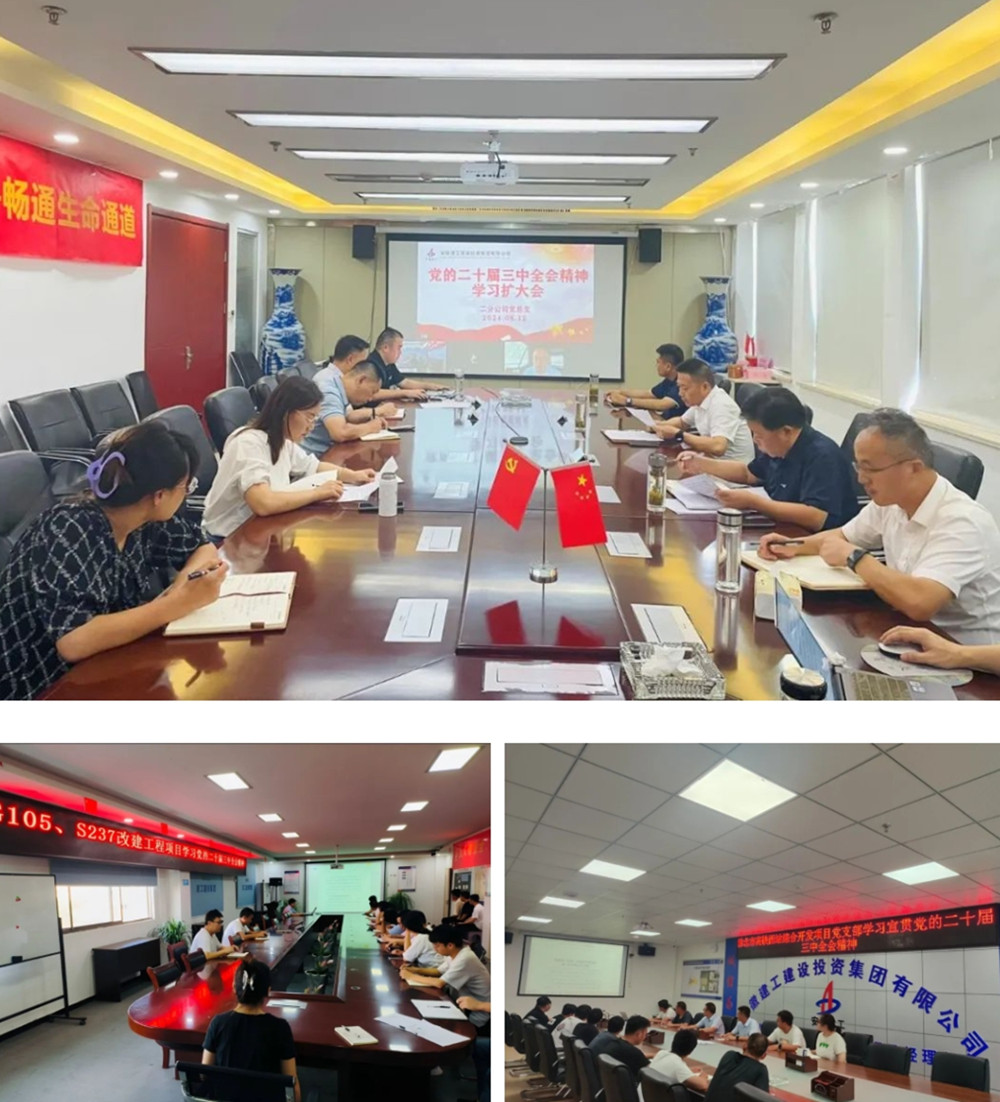 8月6日至12日,所属各党支部、项目部组织召开学习宣贯党的二十届三中全会精神专题会议。会上,项目部全体党员和职工共同学习了党的二十届三中全会的主要内容和精神实质,并结合项目实际,围绕如何落实全会精神、推动项目高质量发展进行了深入研讨交流。大家一致认为,要深入学习领会全会精神,进一步统一思想、凝聚力量,以更加饱满的热情和更加务实的作风,抓好项目管理,将全会精神转化为推动项目建设的实际行动,确保实现全年各项目标任务。
