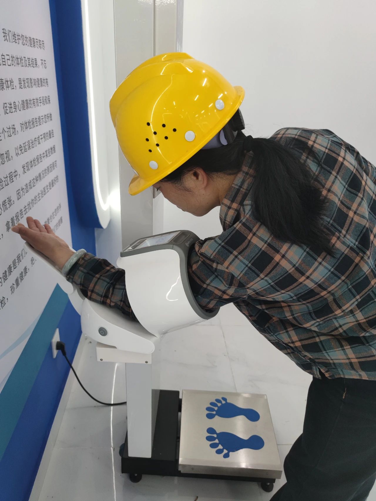 凤凰山水库枢纽工程项目部配备了健康体检仪,可测量身高、体重、体脂肪率,还能检测血压等生理指标,帮助员工了解自身身体状况,及时察觉潜在健康问题。血压、体脂随时测,健康档案云端存!