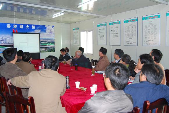 郑总和戴总对项目部克服场地限制、结构复杂、技术难度大等多种不利因素,取得如此的成绩感到高兴,尤其是看到金桃大桥的雄伟英姿甚感欣慰;同时对项目部积极探索和钻研技术难点的精神表示赞赏。并对两项目下一步施工、质量技术管理工作提出要求,勉励项目部依靠科学技术的支撑,进行方案的优化,保证安全质量,降低工程成本,提高工程的经济和社会效益,进一步结合深入学习实践科学发展观,继续开展技术的开发挖掘,进行技术的集成创新,研究、提炼项目工法和专利,为集团公司技术创新多做工作,以增强集团公司的核心竞争力。