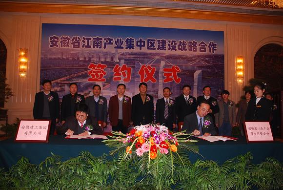 On the morning of November 27, 2010, the signing ceremony of strategic cooperation agreement was held in Hefei Daoxianglou Hotel by ACEG and Anhui Jiangnan Industry Cluster Zone Management Committee (AJICZ).