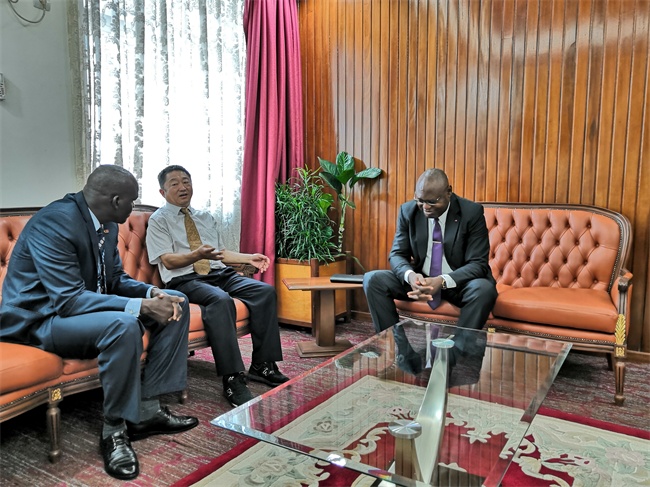 Mr. Chen Xiuxiang is meeting with H.E. Mr. Christophe Mien Zok (first form right), General Manager of Cameroonian Conference Building