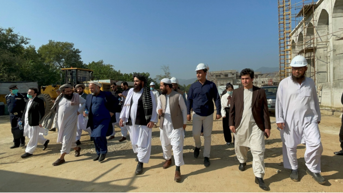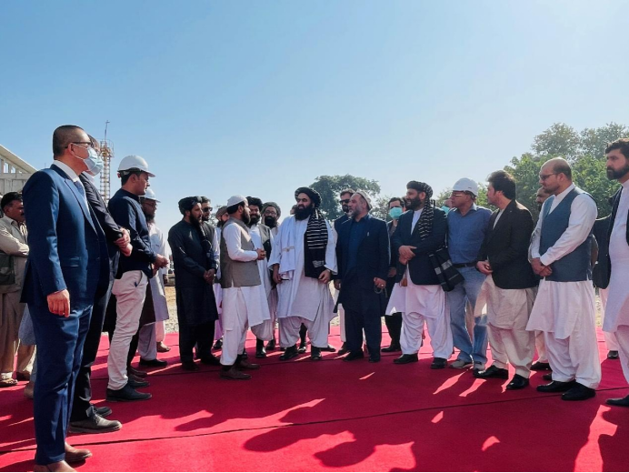 Acting Foreign Minister, H.E. Mr. Amir Khan Muttaqi (fourth from the left) and his delegation arrive at the project site.